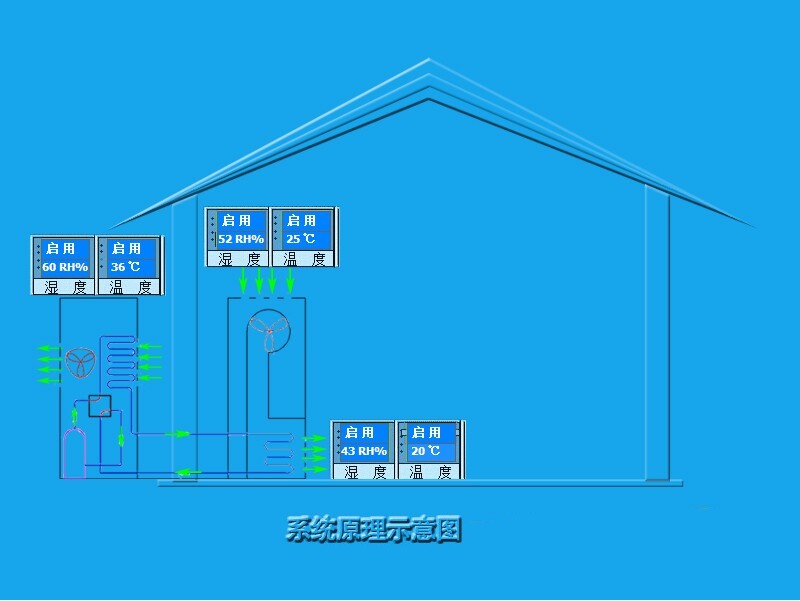 當室內溫濕度與要求值差距較大且通過(guò)新風(fēng)系統不能滿(mǎn)足要求時(shí),系統開(kāi)啟制冷、制熱功能,同時(shí)系統關(guān)閉進(jìn)出風(fēng)口風(fēng)閥起保溫功能。