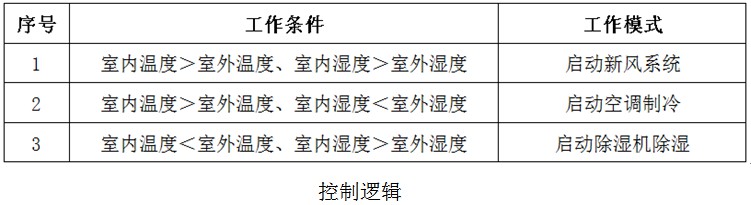 在確保室內環(huán)境的前提下,依據室內外溫濕度,控制風(fēng)機、空調的切換運行。